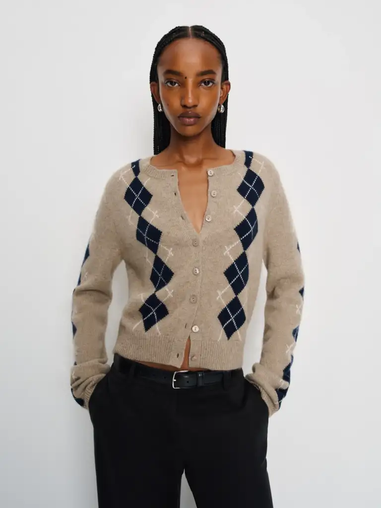Clara Cashmere Crew Cardigan is made from 95% Recycled Cashmere and 5% Cashmere sustainably in China. $218